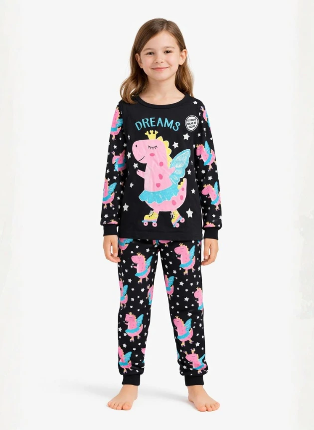 Conjunto de pijama infantil feminino com estampa divertida de unicórnio, perfeito para noites cheias de conforto e imaginação. Confeccionado em malha macia, proporciona toque suave na pele e liberdade de movimentos.